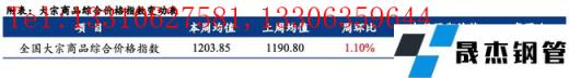 全國大宗商品綜合價格指數(shù)均值為1203.85,環(huán)比上升,增幅1.10%(前值2.53%);同比上升,增幅18.17%(前值16.20%)。