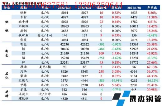 免責(zé)聲明:本網(wǎng)站(山東聊城晟杰無縫鋼管廠www.abagaf.com)刊載的“大宗原材料價格周報(1.24-1.28)”等均源于網(wǎng)絡(luò),版權(quán)歸原作者所有,且僅代表原作者觀點,本文所載信息僅供參考。轉(zhuǎn)載僅為學(xué)習(xí)與交流之目的,如無意中侵犯您的合法權(quán)益,請及時聯(lián)系刪除。本網(wǎng)站刊登此篇文章并不意味著本站贊同其觀點或證實其內(nèi)容的真實性,我們不對其科學(xué)性、嚴肅性等作任何形式的保證。如果侵犯了您的版權(quán),請盡快聯(lián)系我們予以撤銷,謝謝合作!