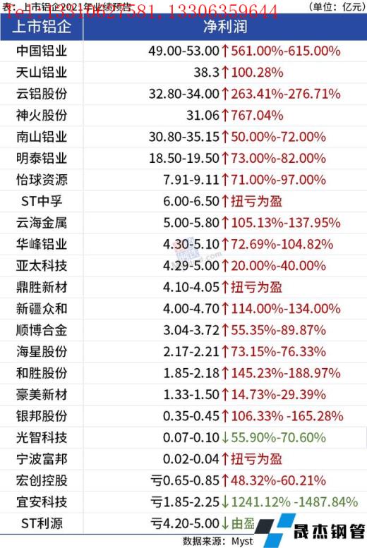 免責聲明:本網(wǎng)站(山東聊城晟杰無縫鋼管廠www.abagaf.com)刊載的“23家上市鋁企披露2021年業(yè)績預(yù)報,超8成凈利潤增長”等均源于網(wǎng)絡(luò),版權(quán)歸原作者所有,且僅代表原作者觀點,本文所載信息僅供參考。轉(zhuǎn)載僅為學習與交流之目的,如無意中侵犯您的合法權(quán)益,請及時聯(lián)系刪除。本網(wǎng)站刊登此篇文章并不意味著本站贊同其觀點或證實其內(nèi)容的真實性,我們不對其科學性、嚴肅性等作任何形式的保證。如果侵犯了您的版權(quán),請盡快聯(lián)系我們予以撤銷,謝謝合作!