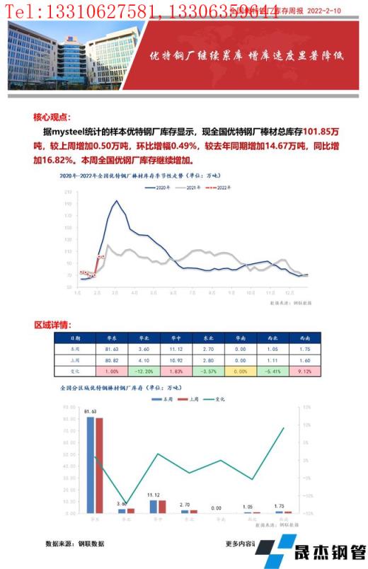 核心觀點(diǎn): 據(jù)mysteel統(tǒng)計(jì)的樣本優(yōu)特?zé)o縫厚壁鋼管廠家?guī)齑骘@示,現(xiàn)全國(guó)優(yōu)特?zé)o縫厚壁鋼管廠家棒材總庫(kù)存101.85萬(wàn)噸,較上周增加0.50萬(wàn)噸,環(huán)比增幅0.49%,較去年同期增加14.67萬(wàn)噸,同比增加16.82%。本周全國(guó)優(yōu)無(wú)縫厚壁鋼管廠家?guī)齑胬^續(xù)增加。