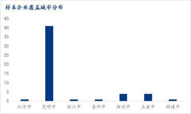 本次調(diào)研樣本中云南企業(yè)53家,昆明企業(yè)41家,占比77.36%,玉溪市和曲靖市企業(yè)各4家,分別占比7.55%;紅河、麗江、普洱、昭通企業(yè)各1家,占比為7.55%。