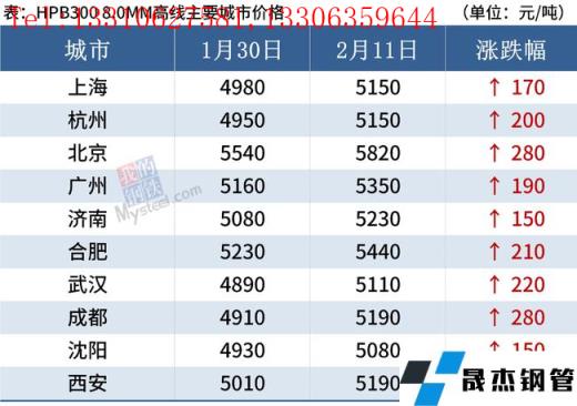 據(jù)監(jiān)測,截至2月11日,全國主要城市20mm三級抗震螺紋鋼均價5032元/噸,較節(jié)前(1月30日)上漲215元/噸;8.0mmHPB300高線均價5244元/噸,較節(jié)前上漲221元/噸。