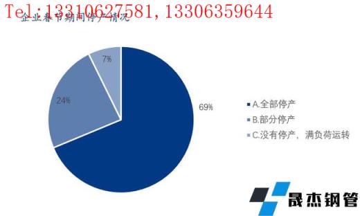 本次調(diào)研樣本企業(yè)中春節(jié)期間全部停產(chǎn)的占比69%;部分停產(chǎn)的占比24%;沒有停產(chǎn)且滿負荷運轉(zhuǎn)的企業(yè)占比7%。