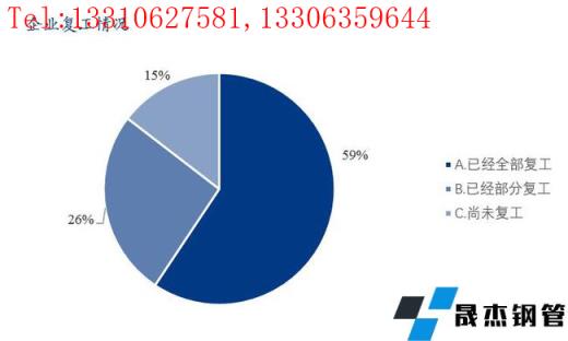 本次調(diào)研樣本企業(yè)中在調(diào)研期間已全部復(fù)工的占比59%;部分復(fù)工的占比26%;尚未復(fù)工的占比15%。