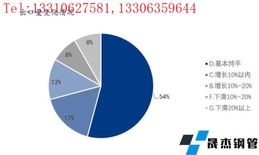 本次調(diào)研擁有出口業(yè)務(wù)企業(yè)中,與去年同期相比,出口量預(yù)計增加的占比為30%,基本持平的占比為54%,預(yù)計出現(xiàn)下滑的占比為16%。