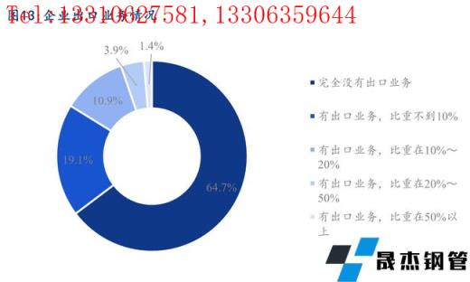 據(jù)調(diào)研,35.5%的樣本企業(yè)有出口業(yè)務,出口業(yè)務比重大多集中在20%以內(nèi)。40.9%的企業(yè)出口訂單量較去年同期比基本持平,43.6%的企業(yè)出口訂單量同比有增長,15.5%的企業(yè)出口訂單同比有下降,主要是受全球疫情,以及中美貿(mào)易摩擦的影響。36.5%的企業(yè)出口價格較去年同期比基本持平,53.6%的企業(yè)出口價格同比有上漲,9.9%的企業(yè)出口價格同比出現(xiàn)下降。43.1%的企業(yè)出口量較去年同期比基本持平,49.7%的企業(yè)出口量同比有增長,主要是產(chǎn)品的類別和客戶都有增加,7.2%的企業(yè)出口量同比有所下滑,主要是受外幣貶值以及疫情影響下運輸成本提高的個影響。