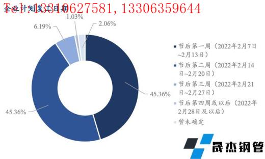 調(diào)研樣本中45.36%的企業(yè)在節(jié)后第一周復(fù)工,45.36%的樣本在節(jié)后第二周復(fù)工,還有1.03%的企業(yè)尚未確定復(fù)工時間。