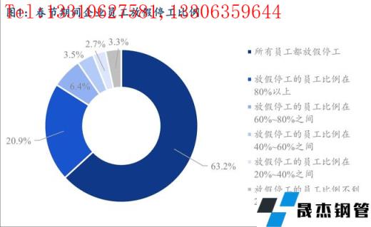 據(jù)調研,春節(jié)期間所有員工都放假停工的企業(yè)占調研樣本比例達到63.2%,放假停工的員工比例在80%以上的企業(yè)樣本占比達到20.9%,同時放假停工的員工比例不到20%的企業(yè)僅占比3.3%。