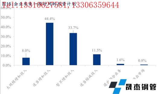 據(jù)調研,33.7%的企業(yè)在未來一段時間暫不增加投入,52.4%的企業(yè)在未來一段時間有投資計劃,其中大規(guī)模增加投入的企業(yè)占比8.0%,而適當縮減或退出部分業(yè)務的企業(yè)占比13.8%左右。