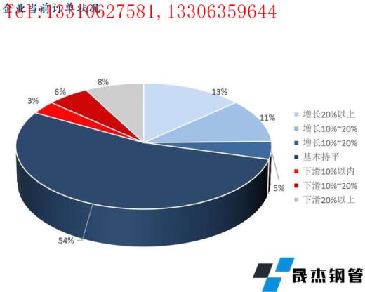 3、樣本企業(yè)當前訂單增速小幅下降。增長20%以上的企業(yè)占比13.48%,增長10-20%的企業(yè)占比11.24%;增長10%以內(nèi)的企業(yè)占比4.49%;基本持平的企業(yè)占比53.93%;下滑10%以內(nèi)的企業(yè)占比3.37%;下滑10-20%的企業(yè)占比5.62%;下滑20%以上的企業(yè)占比7.87%。