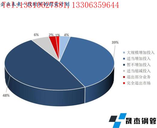 13、樣本企業(yè)未來一段時間的投資計劃:企業(yè)大規(guī)模增加投入的企業(yè)占比3.37%;適當增加投入的企業(yè)占比39.33%;暫不增加投入的企業(yè)占比48.31%;適當縮減投入的企業(yè)占比5.62%;退出部分業(yè)務(wù)的企業(yè)占比2.25%;完全退出市場的企業(yè)占比1.12%。
