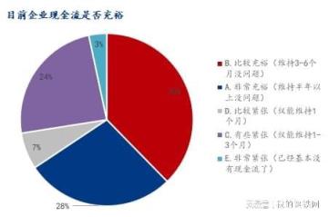 目前企業(yè)的現(xiàn)金流是否充裕,參與調研企業(yè)中表示比較充裕(維持3-6個月沒問題)占比37.69%,非常充裕(維持半年以上沒問題)占比27.94%,比較緊張(僅能維持1個月)占比6.87%,有些緊張(僅能維持1-3個月)占比24.17%,非常緊張(已經(jīng)基本沒有現(xiàn)金流了)占比3.33%。