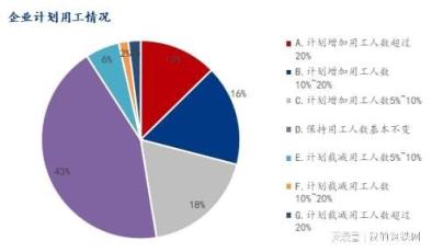 4、對于企業(yè)計劃用工情況,參與調研企業(yè)中47.45%企業(yè)計劃增加用工人數(shù),43.46%企業(yè)保持基本不變,9.09%的企業(yè)計劃裁減用工人數(shù)。