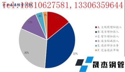 對于企業(yè)未來投資計劃,參與調研企業(yè)中表示大規(guī)模增加投入占比14.19%,適當增加投入占比37.03%,暫不增加投入占比30.38%,適當縮減投入占比11.75%,退出部分業(yè)務占比4.21%,完全退出市場占比2.44%。
