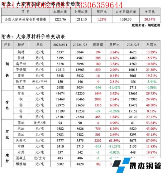 免責(zé)聲明:本網(wǎng)站(山東聊城晟杰無縫鋼管廠www.abagaf.com)刊載的“MRI:大宗原材料價(jià)格周報(bào)(2月7日-2月11日)”等均源于網(wǎng)絡(luò),版權(quán)歸原作者所有,且僅代表原作者觀點(diǎn),本文所載信息僅供參考。轉(zhuǎn)載僅為學(xué)習(xí)與交流之目的,如無意中侵犯您的合法權(quán)益,請(qǐng)及時(shí)聯(lián)系刪除。本網(wǎng)站刊登此篇文章并不意味著本站贊同其觀點(diǎn)或證實(shí)其內(nèi)容的真實(shí)性,我們不對(duì)其科學(xué)性、嚴(yán)肅性等作任何形式的保證。如果侵犯了您的版權(quán),請(qǐng)盡快聯(lián)系我們予以撤銷,謝謝合作!