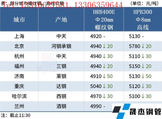 ◎福州:15日早盤建材市場價(jià)格跌20,現(xiàn)線三鋼5150三寶5130,螺三鋼4940三寶4920大東海4920吳鐵4910,盤三鋼5220三寶5200。(單位:元/噸)