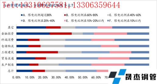 根據(jù)690余家企業(yè)反饋的限電比例情況,多數(shù)企業(yè)限電在20%-40%和10%-20%區(qū)間,占比分別為23.31%和22.30%,限電比例低于20%的企業(yè)約40%,而限電較為嚴(yán)重、比例超過60%的企業(yè)占20%水平。各行業(yè)限電比例分布差異不是特別大。
