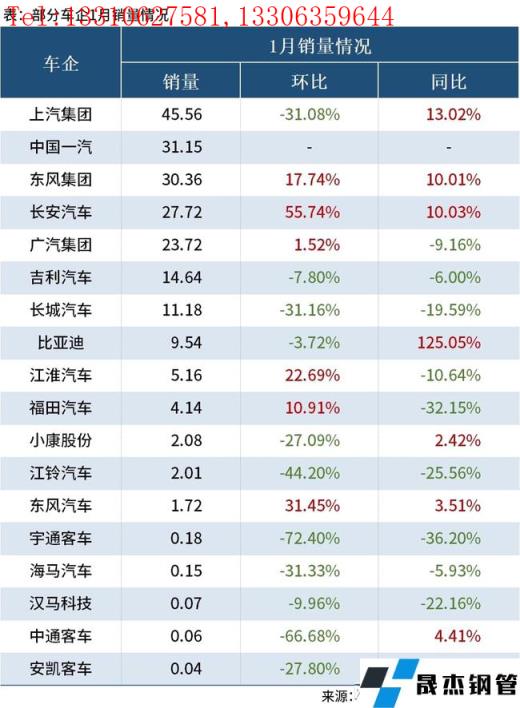 免責(zé)聲明:本網(wǎng)站(山東聊城晟杰無縫鋼管廠www.abagaf.com)刊載的“1月我國汽車產(chǎn)銷降幅明顯,多數(shù)車企呈現(xiàn)雙位數(shù)下跌”等均源于網(wǎng)絡(luò),版權(quán)歸原作者所有,且僅代表原作者觀點(diǎn),本文所載信息僅供參考。轉(zhuǎn)載僅為學(xué)習(xí)與交流之目的,如無意中侵犯您的合法權(quán)益,請及時(shí)聯(lián)系刪除。本網(wǎng)站刊登此篇文章并不意味著本站贊同其觀點(diǎn)或證實(shí)其內(nèi)容的真實(shí)性,我們不對其科學(xué)性、嚴(yán)肅性等作任何形式的保證。如果侵犯了您的版權(quán),請盡快聯(lián)系我們予以撤銷,謝謝合作!