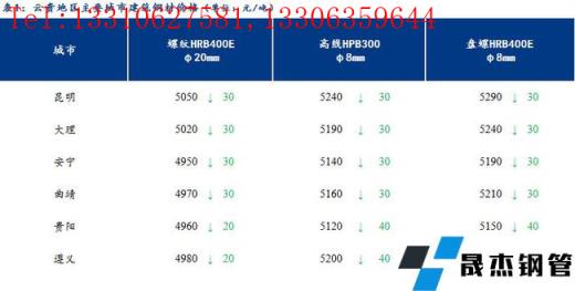 【今日價(jià)格】從云貴主要城市建筑厚壁無縫鋼管價(jià)格來看,今日云南建筑厚壁無縫鋼管市場(chǎng)價(jià)格下跌30元/噸,貴州建筑厚壁無縫鋼管市場(chǎng)價(jià)格下跌20-40元/噸。