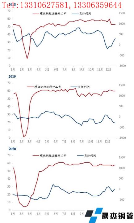 在開工率達到相對高位的情況下,電爐鋼的實際利潤并不會推動其上升,實際利潤對于開工率的向下拉動作用反而更為明顯,據(jù)2018年到2020年的開工率數(shù)據(jù)推算,當實際利潤下降幅度在100元/噸以上時,開工率的降幅基本都在5%左右。2020年5~6月份的無縫厚壁鋼管廠家電爐生產(chǎn)情況調(diào)查統(tǒng)計的文章中同樣可以看出,當期厚壁無縫鋼管成本上移,部分電爐廠已現(xiàn)虧損的情況下,主動檢修減產(chǎn)的情況是有所展現(xiàn)的。2018年和2019年的諸多文章同樣也可以印證。