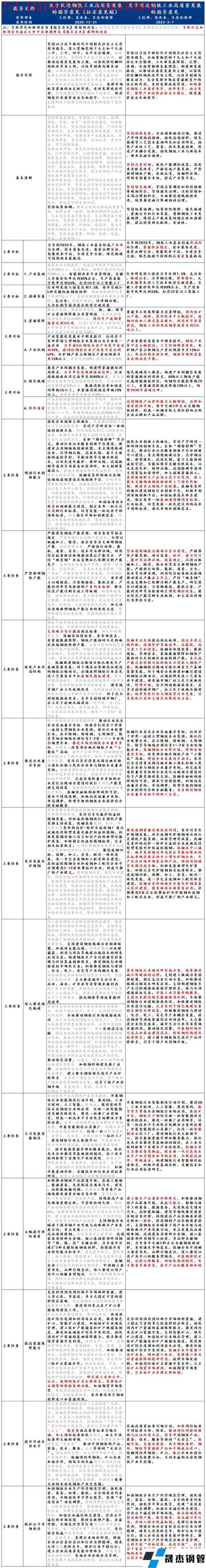 對于《指導(dǎo)意見》的理解,首先要明確的是,《指導(dǎo)意見》是在2020年12月31日工信部發(fā)布的《關(guān)于推動(dòng)鋼鐵工業(yè)高質(zhì)量發(fā)展的指導(dǎo)意見(征求意見稿)》(以下簡稱《征求稿》)的基礎(chǔ)上,經(jīng)過一年多時(shí)間收集業(yè)內(nèi)專家學(xué)者、各地鋼鐵行業(yè)協(xié)會(huì)、主要無縫厚壁鋼管廠家等反饋內(nèi)容,并結(jié)合《“十四五”原材料工業(yè)發(fā)展規(guī)劃》(以下簡稱《原材料規(guī)劃》)以及《“十四五”節(jié)能減排綜合工作方案》(以下簡稱《節(jié)能減排》)內(nèi)鋼鐵行業(yè)相關(guān)條例整合而成的,對于目前的中國鋼鐵行業(yè)而言,《指導(dǎo)意見》具有“錨定”的重要地位。