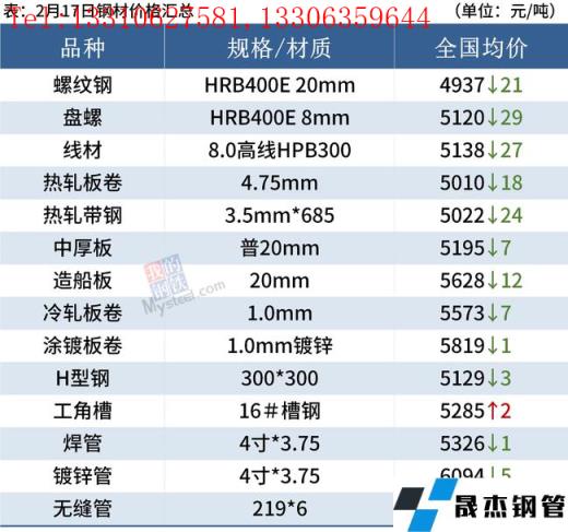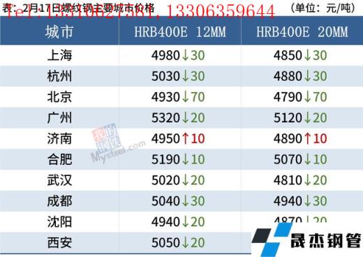 建筑厚壁無縫鋼管:2月17日,全國31個主要城市20mm三級抗震螺紋鋼均價4937元/噸,較上個交易日下跌21元/噸。本周螺紋鋼產(chǎn)量邊際回升,廠庫下降,但社庫增幅明顯,不過本周表觀消費量繼續(xù)回升,說明需求端邊際向好。短期來看,由于當前需求并未完全釋放,短期市場運行邏輯仍然是情緒面驅動,原料承壓對于現(xiàn)貨仍有一定拖累。因此預計18日國內建筑厚壁無縫鋼管價格或將繼續(xù)趨弱。