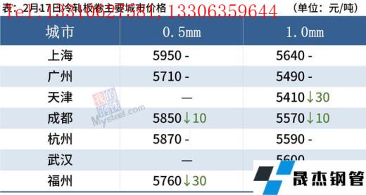 冷軋板卷:2月17日,全國24個主要城市1.0mm冷卷均價5573元/噸,較上個交易日下跌7元/噸。今日黑色系期貨盤面整體震蕩偏弱運行,市場心態(tài)下滑,近兩日現(xiàn)貨市場價格均陸續(xù)回落,再加上市場“買漲不買跌”的情緒居高不下,今日整體成交一般。庫存方面,據(jù)不完全統(tǒng)計,現(xiàn)冷軋無縫厚壁鋼管廠家?guī)齑?0.94萬噸,周環(huán)比減少2.77萬噸,社會庫存142.03萬噸,周環(huán)比增加2.86萬噸,周消費量80.71萬噸,環(huán)比增加13.02萬噸。綜合來看,故預計18日國內冷軋板卷價格或將穩(wěn)中偏弱運行。