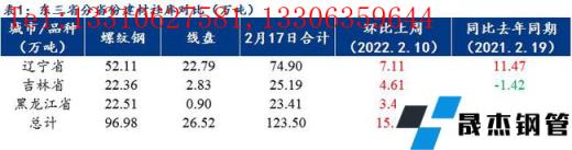 本周東三省建筑厚壁無縫鋼管現(xiàn)貨庫存整體較上周增加15.16萬噸,相比上周37.40%的增速本周明顯放緩,其中螺紋鋼現(xiàn)貨庫存96.98萬噸,線盤26.52萬噸,建材社會(huì)庫存總量為123.50萬噸,較上周增15.16萬噸,增幅13.99%。相比春節(jié)期間累庫較多,本周東北區(qū)域內(nèi)建材現(xiàn)貨增加不多,各市場(chǎng)倉庫到貨一般。