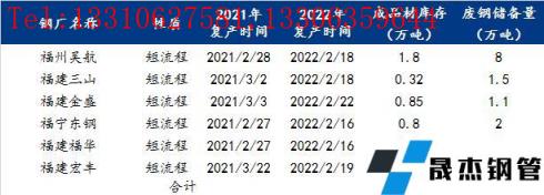 2022年春節(jié)后,價(jià)格整體繼續(xù)呈現(xiàn)“開門紅”的格局,但由于目前我國廢鋼供應(yīng)量不足、采購價(jià)格較高等問題的普遍存在,加上目前現(xiàn)貨價(jià)差不明顯,短流程無縫厚壁鋼管廠家生產(chǎn)甚至仍處于倒掛。綜合影響下,短流程無縫厚壁鋼管廠家今年春節(jié)期間停產(chǎn)時間相較去年有所增加。據(jù)mysteel調(diào)研的《福建省部分短流程無縫厚壁鋼管廠家停產(chǎn)檢修計(jì)劃一覽》中,多家鋼企預(yù)計(jì)復(fù)產(chǎn)時間多在春節(jié)后一周。當(dāng)前小編對福建省內(nèi)短流程無縫厚壁鋼管廠家實(shí)際復(fù)工時間進(jìn)行簡單的調(diào)研,具體時間如下: