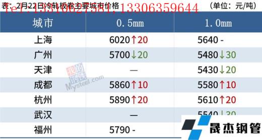 冷軋板卷:2月22日,全國24個(gè)主要城市1.0mm冷卷均價(jià)5580元/噸,較上個(gè)交易日上漲4元/噸。今日黑色期貨呈現(xiàn)高開低走的態(tài)勢,并且午后期貨盤面大幅跳水,現(xiàn)貨市場較為冷清,詢單人數(shù)明顯減少。無縫厚壁鋼管廠家方面,進(jìn)入2月下旬,各大無縫厚壁鋼管廠家結(jié)算陸續(xù)公布,據(jù)了解,AG對上海地區(qū)冷軋結(jié)算價(jià)到庫5470元/噸,BG對上海地區(qū)冷軋結(jié)算價(jià)到庫5450元/噸,稍有盈利空間。下游方面,下游終端企業(yè)以謹(jǐn)慎觀望為主,再加上現(xiàn)處于銷售淡季,需求持續(xù)疲軟。綜合來看,故預(yù)計(jì)23日國內(nèi)冷軋板卷價(jià)格或?qū)⒄鹗幤踹\(yùn)行。