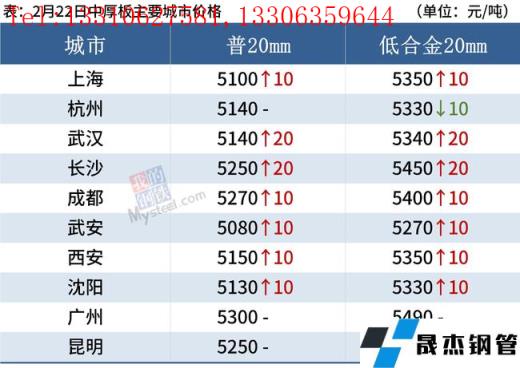中厚板:2月22日,全國24個(gè)主要城市20mm普板均價(jià)5198元/噸,較上個(gè)交易日上漲8元/噸。今日部分無縫厚壁鋼管廠家出廠鎖單價(jià)進(jìn)行調(diào)整,幅度在-20~40之間,收單情況整體偏差。據(jù)對各地商戶的簡單調(diào)研,目前需求較去年同期普遍偏差,成交方面不理想。綜合來看,預(yù)期23日國內(nèi)中板價(jià)格震蕩偏弱運(yùn)行。