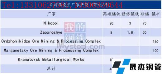 鐵合金企業(yè):Nikopol是烏克蘭最大的一家鐵合金生產(chǎn)商,而第二Zaporozhye Ferroalloy Plant 擁有80多年的歷史,產(chǎn)量占烏克蘭的30-35%,占全球鐵合金產(chǎn)量的1-2%。Zaporozhye擁有29臺(tái)電弧爐,2臺(tái)直流電爐。出口國家有俄羅斯、白俄羅斯、哈薩克斯坦、歐盟國家以及土耳其、埃及、日本、韓國等。