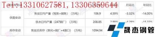 目前無(wú)縫厚壁鋼管廠家利潤(rùn)尚可,對(duì)于焦價(jià)有包容空間;但近日鋼坯價(jià)格接連下跌,無(wú)縫厚壁鋼管廠家利潤(rùn)逐步收縮,若鋼價(jià)繼續(xù)下跌,焦炭上漲,無(wú)縫厚壁鋼管廠家利潤(rùn)收到擠壓,無(wú)縫厚壁鋼管廠家很難再接受焦炭漲價(jià),畢竟焦炭的供應(yīng)也并非特別緊張。