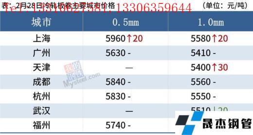 冷軋板卷:2月28日,全國24個主要城市1.0mm冷卷均價5545元/噸,較上個交易日上漲5元/噸。據(jù)貿(mào)易商反饋,今日冷軋行情在延續(xù)前期偏悲觀情緒大部分地區(qū)弱穩(wěn)運行,少部分地區(qū)暗降出貨,兌現(xiàn)情緒漸濃,維持出貨為主。下游行業(yè)全面復工復產(chǎn),多按需采購,備貨意愿不高。預計3月1日國內(nèi)冷軋現(xiàn)貨價格多窄幅震蕩運行。