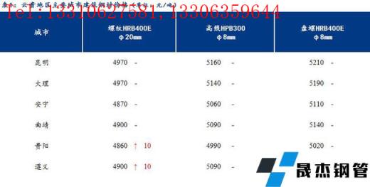 【今日價(jià)格】從云貴主要城市建筑厚壁無(wú)縫鋼管價(jià)格來(lái)看,今日云南建筑厚壁無(wú)縫鋼管市場(chǎng)價(jià)格穩(wěn)定,貴州螺紋鋼市場(chǎng)價(jià)格上漲10元/噸。