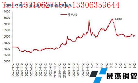 回顧價格方面,截止2月28日,廣州市場主流螺紋鋼銷售價格5030元/噸,較1月底(5000元/噸)上漲30元/噸,漲幅為0.6%,由于2月份整體市場表現(xiàn)為沖高回落,目前現(xiàn)貨價格已經(jīng)回歸到春節(jié)水平。2月份以來,在春節(jié)因素下,上旬價格基本平穩(wěn);節(jié)后開市在宏觀數(shù)據(jù)利好、無縫厚壁鋼管廠家助推以及限產(chǎn)預(yù)期下,市場迎來開門紅行情,隨后在原料強(qiáng)調(diào)控下,價格沖高回落。一方面,鐵礦石及雙焦持續(xù)受政策性調(diào)控,制約成材價格反彈空間;另一方面,國際形勢緊張疊加疫情反復(fù)以及需求釋放預(yù)期落空導(dǎo)致價格進(jìn)一步回落。節(jié)后市場走勢基本上把慣性拉漲過后的疲軟表現(xiàn)的淋漓盡致。短期來看,目前價格回到節(jié)前水平,但節(jié)前有備貨的商家基本上落袋為安,節(jié)前低價資源逐漸售空,短期貿(mào)易商現(xiàn)貨成本偏高,對價格有一定支撐。
