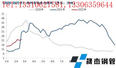 2022年河南市場整體冬儲量遠超去年,但實際節(jié)后到貨情況低于預期,主要減量是在個別省內(nèi)無縫厚壁鋼管廠家螺紋產(chǎn)線仍未復產(chǎn),且盤螺線臨近2月中下旬恢復正常生產(chǎn),多數(shù)冬儲量未交付;此外冬奧會期間省外無縫厚壁鋼管廠家生產(chǎn)不暢,到貨節(jié)奏偏緩,整體省內(nèi)累庫速度后延。據(jù)數(shù)據(jù)統(tǒng)計,截止至2月25日,鄭州市場建筑厚壁無縫鋼管庫存在22.2萬噸,年同比降幅在26.8%。據(jù)市場反饋,2022年河南省基建項目新開工居多,彌補部分房建缺口,在下游工地需求緩慢釋放下,大部分資源已發(fā)至工地。但隨著部分無縫厚壁鋼管廠家要求代理商將冬儲資源全部提走,近期資源已從廠庫陸續(xù)轉移至社庫,且疊加3月份代理商正常協(xié)議量,預估3月下旬至4月初鄭州市場庫存或面臨峰值,但庫存峰值或低于去年水平。