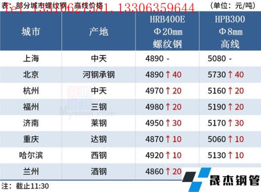 ◎福州:3日早盤建材市場價(jià)格漲20,現(xiàn)線三鋼5190三寶5170,螺三鋼4980三寶4960大東海4960吳鐵4950,盤三鋼5260三寶5240。(單位:元/噸)