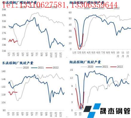 節(jié)后開市,無縫厚壁鋼管廠家建筑厚壁無縫鋼管產(chǎn)量有所回升,但由于利潤的緣故,速率和彈性均不及往年。以螺紋鋼為例,分區(qū)域來看,除華北區(qū)域產(chǎn)量月環(huán)比小幅下降外,其余地區(qū)產(chǎn)量月環(huán)比均出現(xiàn)增加,增幅均較為有限。分工藝來看,長流程無縫厚壁鋼管廠家螺紋鋼產(chǎn)量月環(huán)比下降,短流程無縫厚壁鋼管廠家螺紋鋼產(chǎn)量月環(huán)比增加。分品種來看,螺紋鋼和線材產(chǎn)量月環(huán)比均出現(xiàn)小幅增加。