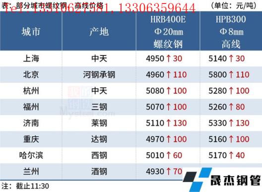 ◎生鐵:7日全國(guó)煉鋼生鐵價(jià)格部分上調(diào)。臨汾4180武安4250唐山4200萊蕪4180臨沂4150淄博4150福建4250內(nèi)蒙4200昆明3850新疆3800遼陽(yáng)4000湖北4050。(單位:元/噸)