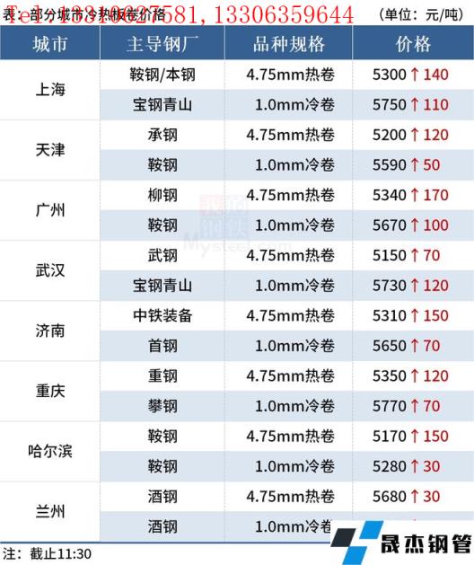 ◎樂(lè)從:7日早盤熱卷市場(chǎng)價(jià)格上漲170,4.75以上普柳燕5340-5350,2.75普5440-5590錳5520-5540。(單位:元/噸)