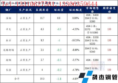 江蘇優(yōu)特無縫厚壁鋼管廠家棒材總庫存35.3萬噸,較上周下降1.8萬噸,環(huán)比降4.85%,較去年同期下降4.68萬噸,同比降11.71%,目前江蘇優(yōu)特無縫厚壁鋼管廠家均正常生產(chǎn)。