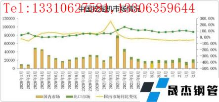 據(jù)市場情況了解到,2月份國內(nèi)市場預(yù)估銷量15000臺,國內(nèi)市場銷量增速降幅小幅收窄;出口市場預(yù)估銷量7000臺,增速87%左右。按照三月份的調(diào)研數(shù)據(jù)顯示,預(yù)計國內(nèi)工程機(jī)械市場仍然按照年度周期性進(jìn)入旺季。一季度的年度旺季的起始點(diǎn)在2月15日左右市場才有所啟動,2月整體的挖掘機(jī)市場情況環(huán)比情況好轉(zhuǎn),節(jié)后需求逐步恢復(fù),基建下行壓力緩解。當(dāng)前受國際形勢影響,挖機(jī)機(jī)的市場國內(nèi)外分配情況情況存在變動,整體趨勢走向還是向上為主。