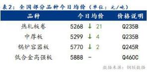 今日全國(guó)部分品種均價(jià)有所回落,整體跌幅為2~21元/噸。