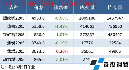 免責聲明:本網站(山東聊城晟杰無縫鋼管廠www.abagaf.com)刊載的“2022年03月09日午報:鋼價多數下跌,動力煤期貨跌逾5%”等均源于網絡,版權歸原作者所有,且僅代表原作者觀點,本文所載信息僅供參考。轉載僅為學習與交流之目的,如無意中侵犯您的合法權益,請及時聯系刪除。本網站刊登此篇文章并不意味著本站贊同其觀點或證實其內容的真實性,我們不對其科學性、嚴肅性等作任何形式的保證。如果侵犯了您的版權,請盡快聯系我們予以撤銷,謝謝合作!