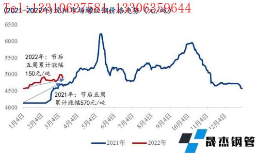 1.春節(jié)后東北市場的螺紋鋼價格呈現(xiàn)先漲后跌震蕩運(yùn)行的態(tài)勢,習(xí)慣性的開門紅帶動了本地價格的整體上漲,但因需求釋放緩慢、實質(zhì)性成交稀少,價格上漲呈現(xiàn)疲態(tài);進(jìn)入3月冬儲資源結(jié)算期后,無縫厚壁鋼管廠家頻繁上調(diào)價格,商家成本連續(xù)攀升,支撐價格高位運(yùn)行,節(jié)后五周螺紋累計漲幅在150元/噸;