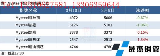◎ 3月10日 寶鋼4月冷熱調(diào)價(jià):厚板基價(jià)上調(diào)200;熱軋基價(jià)上調(diào)200;酸洗基價(jià)上調(diào)200;CQ級及非汽車用鋼基價(jià)上調(diào)200,其余上調(diào)300。