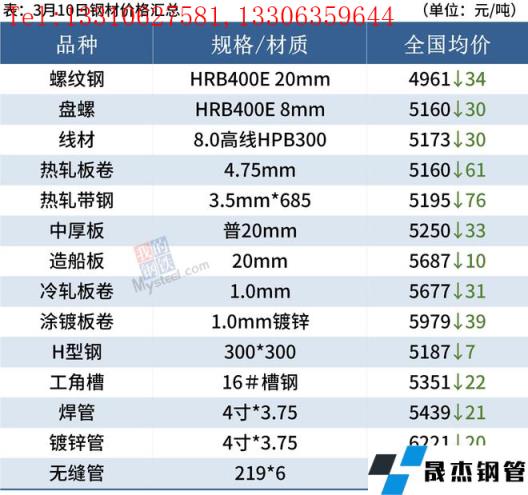 建筑厚壁無縫鋼管:3月10日,全國31個(gè)主要城市20mm三級(jí)抗震螺紋鋼均價(jià)4961元/噸,較上個(gè)交易日下跌34元/噸。本周供給繼續(xù)小增,庫存迎來拐點(diǎn),且降幅尚可。綜合來看,目前供給仍然處于回升階段,但整體增量有限;需求方面,隨著天氣逐漸好轉(zhuǎn),需求有所回升。考慮到近期國際形勢(shì)仍然不穩(wěn),短期現(xiàn)貨市場(chǎng)受情緒波動(dòng)影響較大。因此預(yù)計(jì)11日國內(nèi)建筑厚壁無縫鋼管價(jià)格將繼續(xù)窄幅趨弱為主。