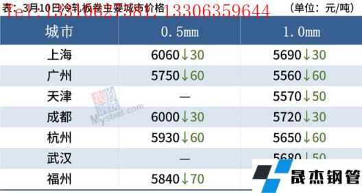 冷軋板卷:3月10日,全國24個(gè)主要城市1.0mm冷卷均價(jià)5677元/噸,較上個(gè)交易日下跌31元/噸。隨著期貨盤面連續(xù)下跌,價(jià)格也隨之下調(diào),市場(chǎng)交投氛圍明顯冷清,今日整體成交一般。心態(tài)方面,部分庫存較大的貿(mào)易商還是以出貨降庫為主,心態(tài)較為謹(jǐn)慎。庫存方面,據(jù)不完全統(tǒng)計(jì),現(xiàn)冷軋無縫厚壁鋼管廠家?guī)齑?4.57萬噸,周環(huán)比減少2.23萬噸,社會(huì)庫存143.40萬噸,周環(huán)比增加0.97萬噸,周消費(fèi)量80.22萬噸,環(huán)比減少2.64萬噸。綜合來看,故預(yù)計(jì)11日國內(nèi)冷軋板卷價(jià)格或?qū)⑵踹\(yùn)行。