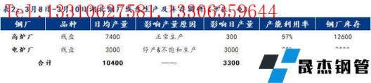 2、湖北省無縫厚壁鋼管廠家線盤日均產(chǎn)量1.04萬噸,周環(huán)比增加0.2萬噸;停產(chǎn)/不飽和生產(chǎn)影響線盤日產(chǎn)量為0.33萬噸,產(chǎn)能利用率76%,周環(huán)比增加15%。